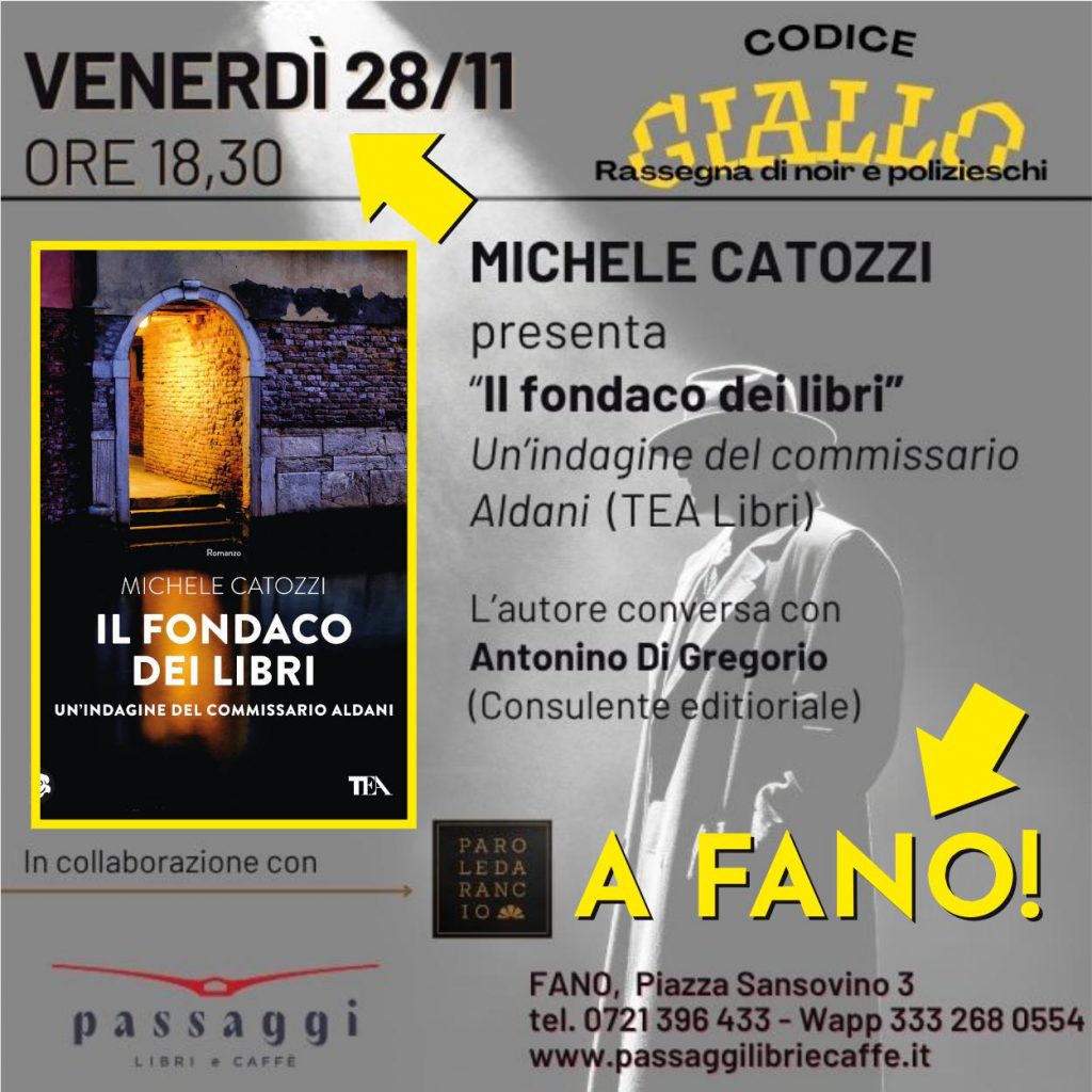 Venerdì 28 novembre alle ore 18.30, presso gli spazi di Passaggi Libri e Caffè, la nuova libreria di Fano (poco distante da Pesaro) si terrà la presentazione¹ de Il fondaco dei libri, sesta indagine del commissario Aldani uscita in libreria il 24 gennaio.
